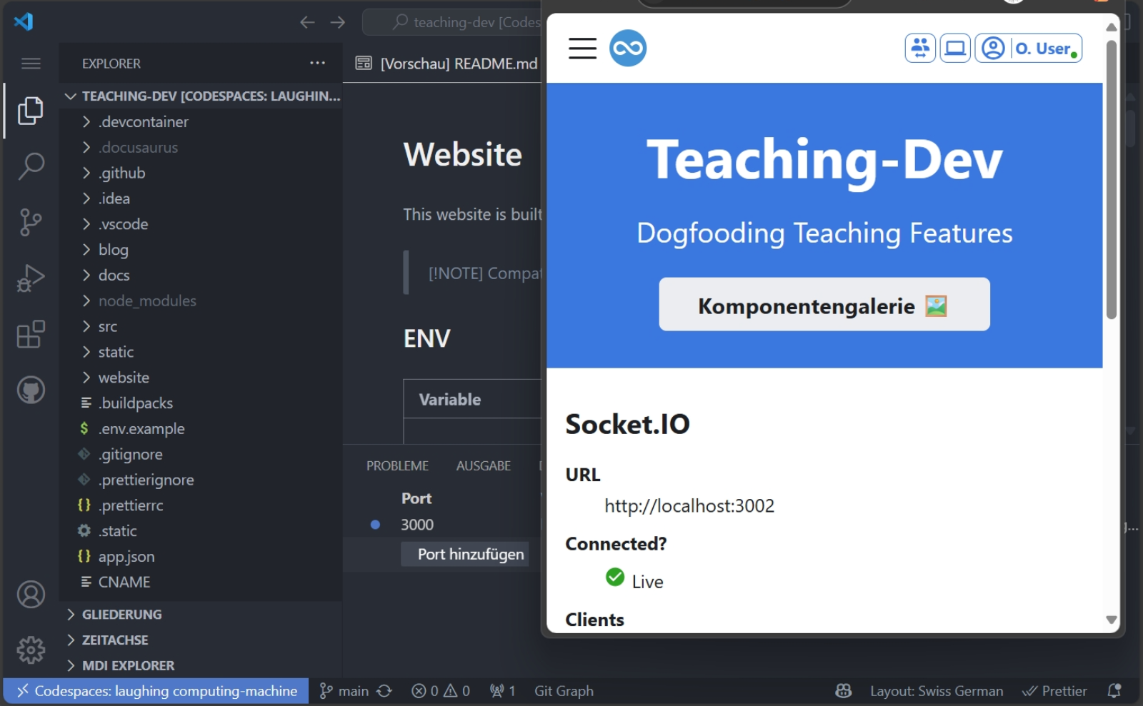 - Im Codespace können nun Änderungen an der Webseite vorgenommen werden.